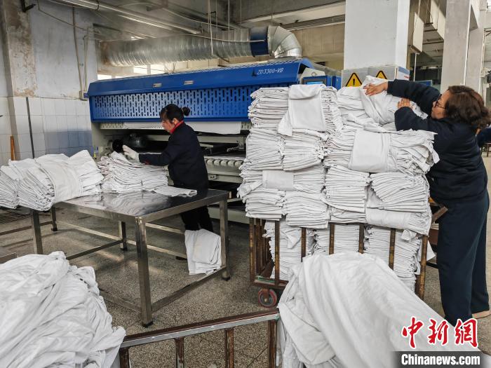 張海榮說,洗滌工們的“神速手”是在每天無數(shù)次的實際操作中練成的,一條烘干后的床單按照折疊3次計算,一個工班8小時折疊2000條,那么在洗滌工手中每天最少要重復折疊5000次以上,“每天重復上千遍,沒有手速和一把子力氣還真不行”。