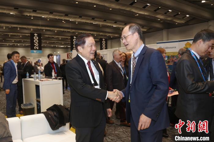 當(dāng)?shù)貢r(shí)間3月3日,2024年加拿大國際礦業(yè)大會(huì)(PDAC)在多倫多揭幕。圖為加拿大聯(lián)邦參議員胡子修(左)與參展中國企業(yè)紫金礦業(yè)集團(tuán)股份有限公司副總裁沈紹陽交流。中新社記者 余瑞冬 攝