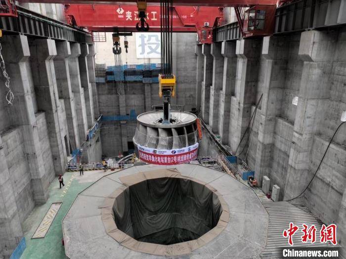 “轉(zhuǎn)輪是水輪發(fā)電機組產(chǎn)生電能的核心部件,被譽為水輪發(fā)電機組的‘心臟’。本次吊裝的轉(zhuǎn)輪由上冠、下環(huán)及15個葉片組裝焊接而成,最大直徑6.37米、高3.29米,吊裝總重約114噸,共歷時52分鐘吊裝完成?!秉S河公司羊曲籌建處主任楊云峰說。