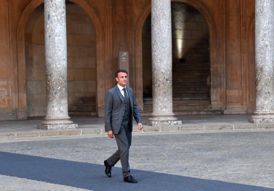 2023年10月5日,在西班牙格拉納達(dá),前來參加第三屆歐洲政治共同體領(lǐng)導(dǎo)人會議的法國總統(tǒng)馬克龍抵達(dá)阿爾罕布拉宮。新華社記者連漪攝