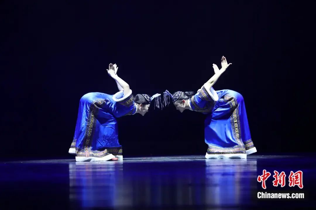 國家級非物質(zhì)文化遺產(chǎn)項目——達斡爾族傳統(tǒng)歌舞魯日格勒搬上舞臺。 蔣希武 攝