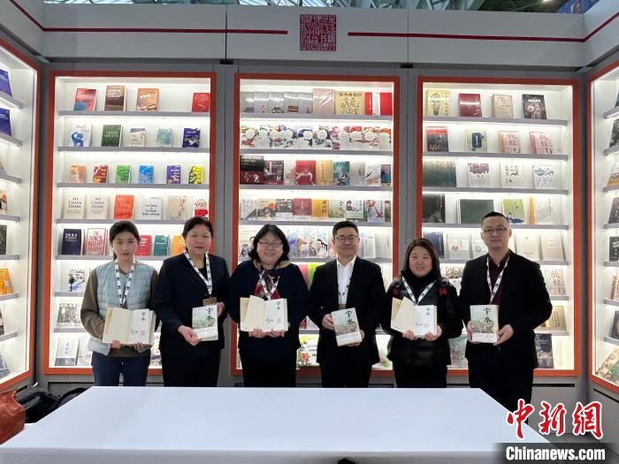 3月12日,2024倫敦書展在倫敦奧林匹亞展覽中心開幕。圖為中國展區(qū)發(fā)布的系列叢書?!≈行律缬浾?歐陽開宇 攝