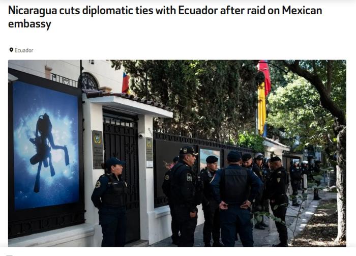 據(jù)報(bào)道,公告稱,尼方堅(jiān)決反對(duì)并譴責(zé)厄政府“公然違反國(guó)際法的行為”。厄安全部隊(duì)本應(yīng)履行保護(hù)厄公民秩序、安全及生命的職責(zé),卻在厄首都基多進(jìn)行了“不正常且令人斥責(zé)”的行動(dòng)。