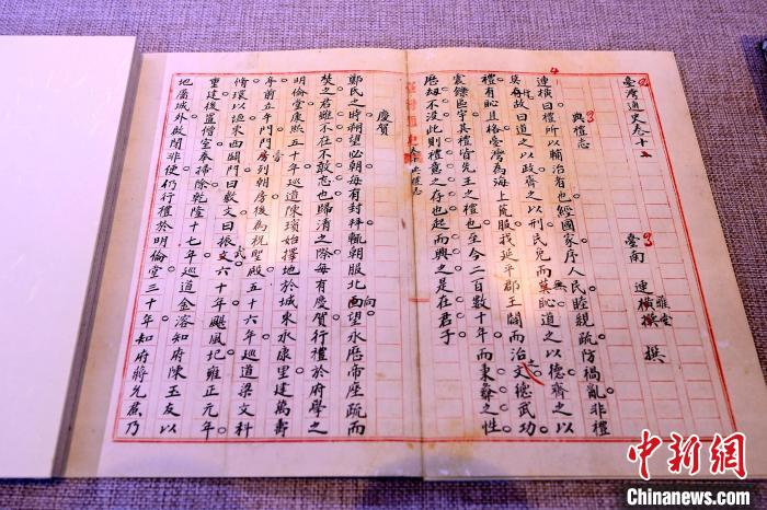 圖為連橫《臺灣通史》手稿殘卷影印本。 中新社記者 張金川 攝