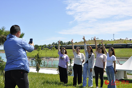 游客在遷安市金嶺礦山生態(tài)修復(fù)旅游觀光景區(qū)打卡留念(資料圖片)。 商立超攝