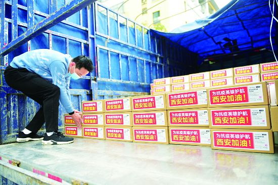 1月10日中午,一輛載著防疫物資的卡車(chē)從浙江義烏科創(chuàng)園出發(fā),駛向西安。車(chē)上共有118桶公共室內(nèi)外環(huán)境長(zhǎng)效納米物理抗菌消殺液,還有專(zhuān)為一線(xiàn)抗疫人員準(zhǔn)備的106箱抗菌防護(hù)加強(qiáng)噴霧。據(jù)悉,前段時(shí)間,西安疫情防控形勢(shì)嚴(yán)峻,該捐贈(zèng)企業(yè)聯(lián)系陜西省總工會(huì)、團(tuán)省委及西安市幾家重點(diǎn)醫(yī)院進(jìn)行捐贈(zèng),希望為抗疫貢獻(xiàn)一份力量。(錢(qián)旭升)