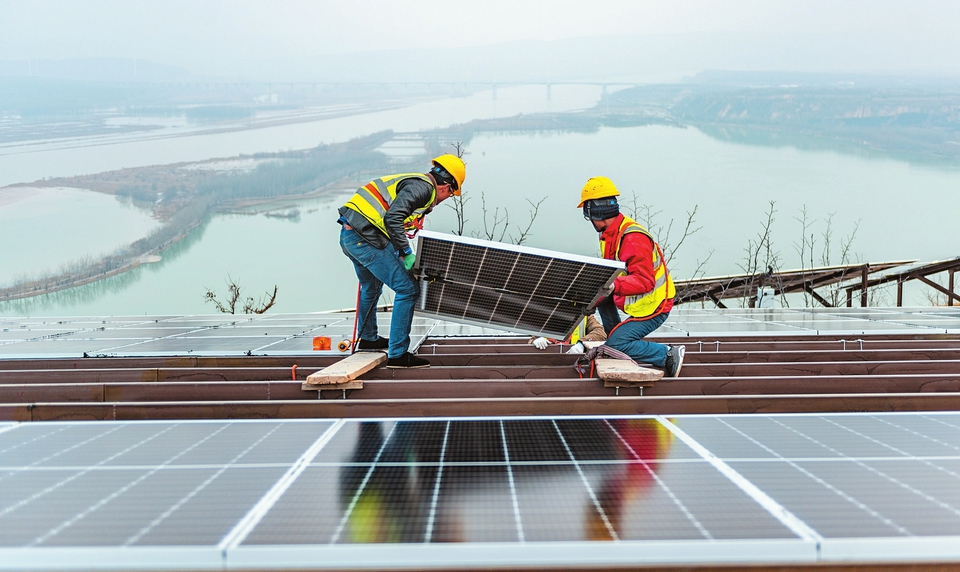 1月7日,施工人員在高空中安裝光伏板。芮城縣莊上村在“2MW光儲(chǔ)直柔直流微網(wǎng)”項(xiàng)目建設(shè)中,嚴(yán)格按照安全施工要求,對(duì)高空作業(yè)人員使用的安全帶、頭盔、手套等設(shè)備,作業(yè)之前逐個(gè)檢查,并對(duì)高空作業(yè)人員進(jìn)行安全常識(shí)教育,做到安全生產(chǎn)萬無一失。(薛俊攝)