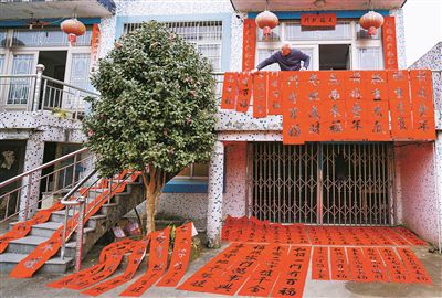 “和順一門有百福 平安二字值千金”……1月13日上午,在寧波寧??h黃壇鎮(zhèn)永聯(lián)村村民王光彬家中,房間里飄散著濃濃的墨香,幾百副春聯(lián)鋪天蓋地,從墻上蔓延到地上,掛得密密麻麻。