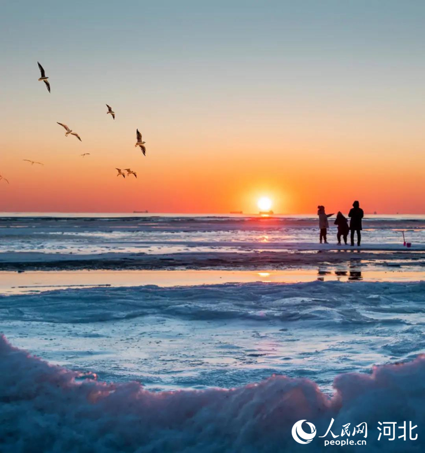 寒冬時(shí)節(jié),秦皇島銀裝素裹,冰雪與大海相遇,猶如一幅水墨丹青畫。沿著海岸線伸展而去的海冰,如鑲嵌在沙灘上的一道玉帶,與冬日的大海、沙灘相映成趣。