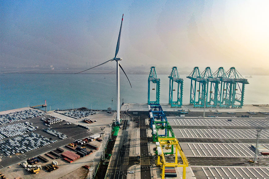 全球首個“智慧零碳”碼頭智慧綠色能源系統(tǒng)順利并網(wǎng)發(fā)電。樂坤攝
