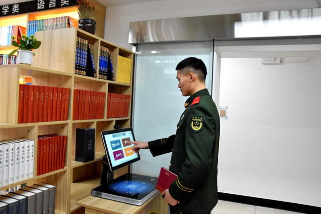 與此同時,支隊還在軍營各處建起班級圖書角,放置自動圖書借閱機,并依托強軍網(wǎng)搭建起智慧軍營閱讀平臺,讓官兵可以隨時根據(jù)自身的興趣愛好精選學習內(nèi)容,瀏覽前沿知識,在整個軍營營造“書香滿軍營、官兵研經(jīng)典”的濃厚氛圍。