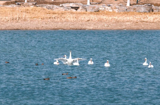 記者撥通北京生物多樣性保護(hù)研究中心鐘震宇電話時(shí),他正帶著中小學(xué)生在南海子觀鳥。“現(xiàn)在小天鵝數(shù)量有22只,它們?cè)陔x岸邊不遠(yuǎn)的水域忙著進(jìn)食。就在剛剛,12只疣鼻天鵝和3只大天鵝從天而降,落到了湖中心,還在梳理羽毛,整頓休息。”鐘震宇說,除了天鵝,鴻雁、豆雁、白秋沙鴨、鳳頭潛鴨、針尾鴨、白眼潛鴨、綠頭鴨、鳳頭鸊鷉等候鳥也紛紛落腳南海子。
