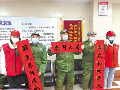 石家莊市正定縣“常山老兵”退役軍人志愿服務(wù)隊(duì)到市榮軍優(yōu)撫醫(yī)院開展“賀新春、獻(xiàn)愛心、送祝?!敝驹阜?wù)活動(dòng)。 河北省退役軍人事務(wù)廳供圖