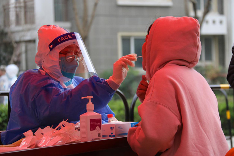 夏朵園居民區(qū)的居民正在進(jìn)行核酸采樣。閔行區(qū)馬橋鎮(zhèn)供圖