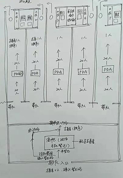 正如祁媛媛所說,靈感來源于實(shí)踐??恐B日來在檢測一線工作的體驗(yàn),祁媛媛不斷摸索,反復(fù)思考,根據(jù)1-6個(gè)工位的不同組合,手繪了6張檢測流程圖,上面清晰地標(biāo)注著檢測的動(dòng)線、每個(gè)環(huán)節(jié)以及對(duì)應(yīng)的功能和注意事項(xiàng),從而能夠直觀地指導(dǎo)居村提升檢測效率,讓檢測如“流水線”般高效順暢。