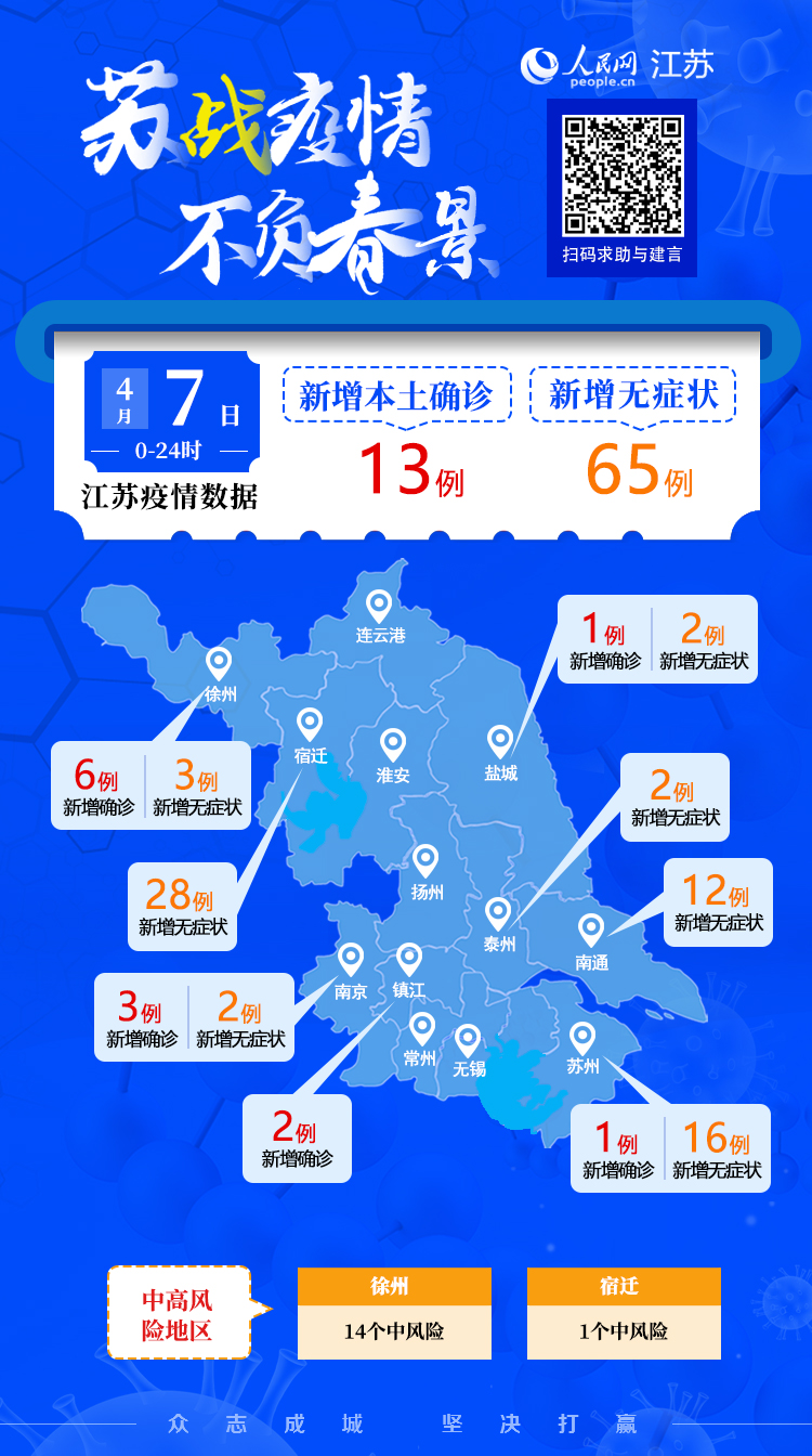 4月7日江蘇新增本土確診病例13例 本土無癥狀感染者65例