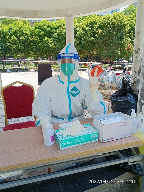 3月以來,上海疫情防控形勢嚴峻。來自同濟大學附屬東方醫(yī)院的護士姜蕾蕾在完成科室內本職工作外,還積極報名參與醫(yī)院組織的外出采核工作。從4月3日開始,她便駐扎在浦東陸家嘴街道,負責各社區(qū)的核酸大篩查與掃樓任務。已半個多月沒有回自己的浦東小家陪陪丈夫與孩子的她,更別提回老家江蘇探望家人朋友們了。