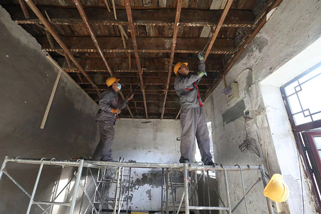 按照計(jì)劃,樓頂將由原來的木質(zhì)大屋脊整體更換為樹脂瓦阻燃屋面。而在第一階段改造中,樓體阻燃,為居民量身訂制燃?xì)夤?,配?4小時(shí)巡護(hù)“管家”,每天進(jìn)行巡查記錄并拍攝現(xiàn)場照片均已完成。一層的臨街房屋內(nèi)的夾層已經(jīng)拆除完畢,木制窗已經(jīng)更換為塑鋼窗,原來的薄墻面上加裝硅酸鈣板,地面鋪設(shè)了耐火地板磚,屋頂?shù)跹b了石膏板。二層樓內(nèi)木樓板已鋪設(shè)耐火瓷磚,樓內(nèi)電線電纜進(jìn)行了梳理排查,完成了整體更換,鋪設(shè)了不銹鋼槽式電纜橋架,確保樓內(nèi)居民用電安全穩(wěn)定。