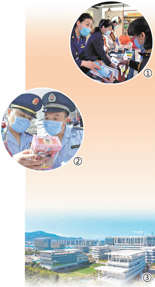 圖②:有關(guān)部門在北京市南鑼鼓巷商業(yè)街區(qū)開展涉旅游商品知識(shí)產(chǎn)權(quán)保護(hù)檢查、執(zhí)法。
