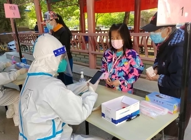 “讓我去封控區(qū),我年輕,身體好!”4月26日,紅廟北里小區(qū)部分區(qū)域?qū)嵤┓猓ü埽┛?,朝陽區(qū)八里莊街道社區(qū)衛(wèi)生服務(wù)中心護士劉彩麗主動請纓,就這樣,22歲的劉彩麗和其他4名同事承擔(dān)起5個單元門的核酸采樣任務(wù)。