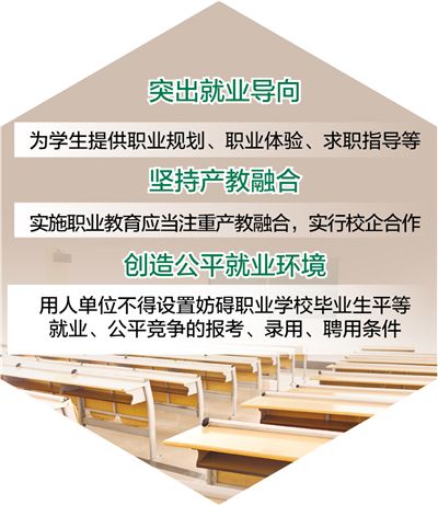 為不斷增強(qiáng)職業(yè)教育適應(yīng)性,新修訂的職業(yè)教育法增加規(guī)定:國家根據(jù)產(chǎn)業(yè)布局和行業(yè)發(fā)展需要,采取措施,大力發(fā)展先進(jìn)制造等產(chǎn)業(yè)需要的新興專業(yè),支持高水平職業(yè)學(xué)校、專業(yè)建設(shè)。國家采取措施,加快培養(yǎng)托育、護(hù)理、康養(yǎng)、家政等方面技術(shù)技能人才。