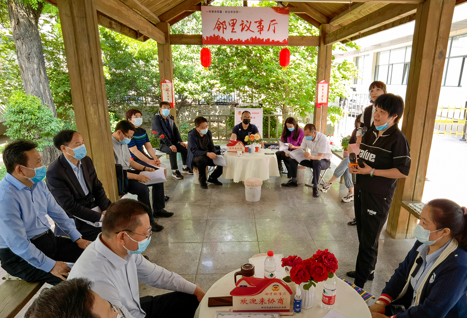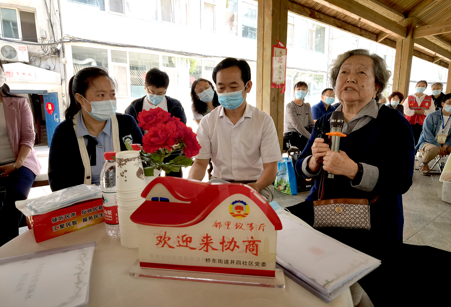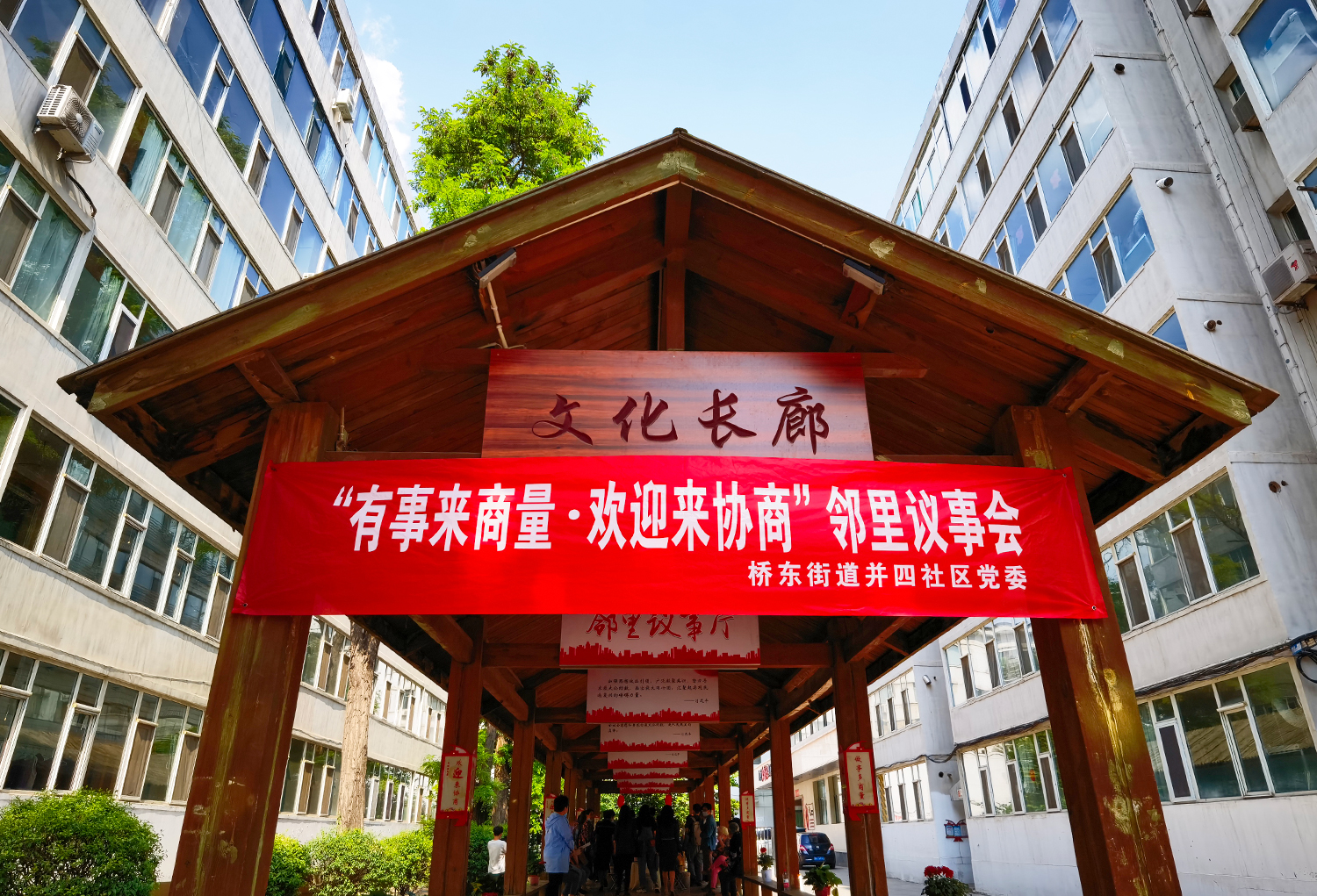 初夏。太原市迎澤區(qū)橋東街道并四社區(qū)新生里89號(hào)院,文化長(zhǎng)廊里支起了三張“議事桌”。兩側(cè)長(zhǎng)廊不夠坐,前排“見縫插針”擺上了小馬扎,來(lái)自街道社區(qū)、物業(yè)、居民和政協(xié)委員等各方面的代表圍坐在一起,“鄰里議事會(huì)”開場(chǎng)了。
