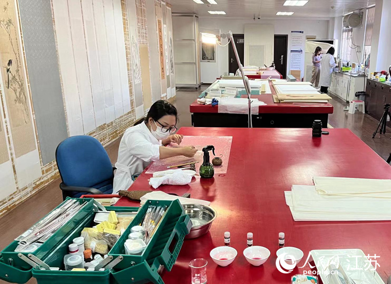現(xiàn)在,越來越多的年輕人加入到這份彰顯情懷和定力的工作中來。陳思燚說,“我們就是‘書畫醫(yī)生’,修復(fù)書畫的過程,就是給文物看病治療的過程?!蹦壳埃谀喜氖聲嬓迯?fù)工作的團(tuán)隊已有9人,主要以80后、90后為主力。