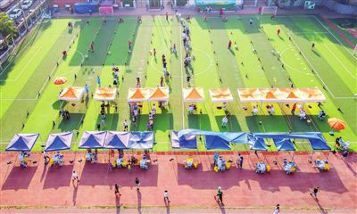 6月5日,天津市有序開展全員核酸檢測。圖為河西區(qū)土城小學核酸檢測采樣點。 記者 吳迪 攝