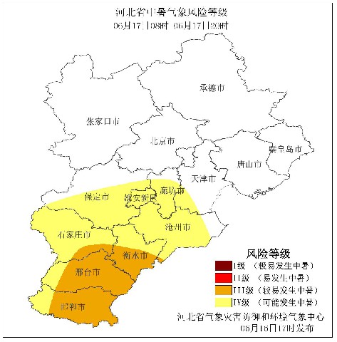 據(jù)了解,河北省氣象災(zāi)害防御和環(huán)境氣象中心2022年6月16日17時(shí)發(fā)布中暑氣象風(fēng)險(xiǎn)等級(jí)預(yù)報(bào):明天白天,保定、廊坊以南大部分地區(qū)中暑氣象風(fēng)險(xiǎn)等級(jí)在IV級(jí)及以上,可能發(fā)生中暑,其中衡水南部、邢臺(tái)和邯鄲兩市的中東部地區(qū)中暑氣象風(fēng)險(xiǎn)等級(jí)為Ⅲ級(jí),較易發(fā)生中暑,請(qǐng)注意防范。