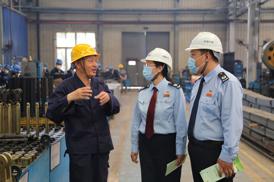 國家稅務(wù)總局石家莊市新華區(qū)稅務(wù)局工作人員到企業(yè)實地了解企業(yè)經(jīng)營情況。劉靜攝