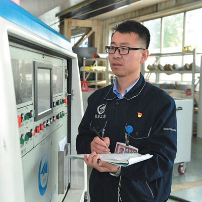 孫志強在記錄設(shè)備加工數(shù)據(jù)。