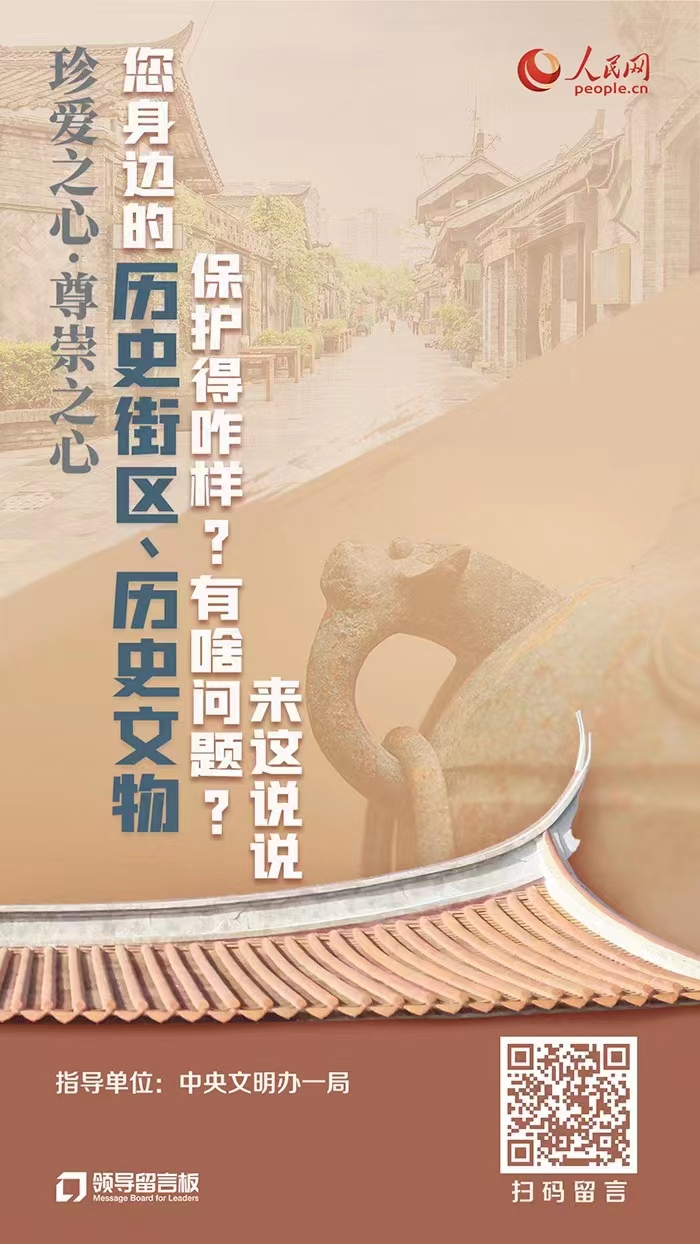 在你的家鄉(xiāng),或你現(xiàn)在生活、工作的地方,是否有具備保護(hù)價(jià)值的歷史街區(qū)與文物古跡?對(duì)于這些歷史街區(qū)與文物古跡的保護(hù)、展示與利用,你又是否有哪些建議或創(chuàng)新想法?歡迎來“領(lǐng)導(dǎo)留言板”說說()。