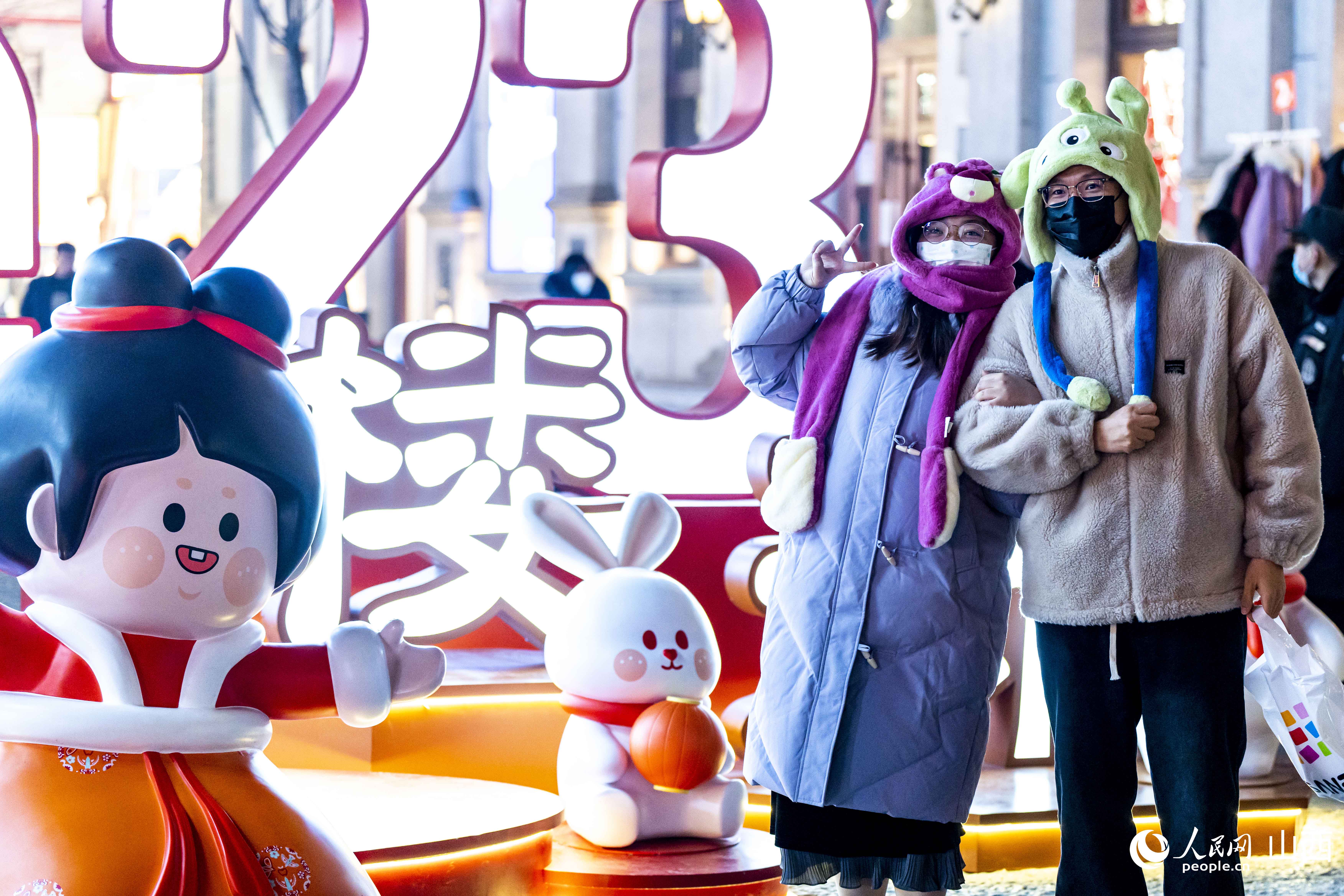 每逢夜幕降臨,鐘樓街上燈光璀璨,人頭攢動(dòng)。隨處可見(jiàn)的新年兔子元素,為城市增添了年味,游客紛紛駐足拍照,喜氣洋洋,年味兒十足。