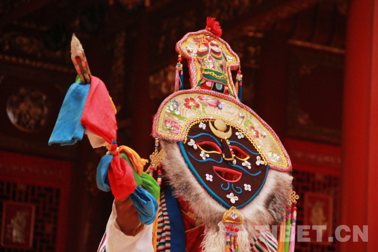 圖為拉薩市城關區(qū)娘熱民間藝術團演員多吉次仁表演國家級非物質文化遺產“嘎爾”攝影:劉莉