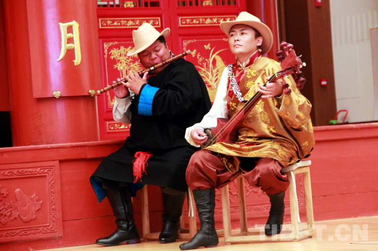 圖為拉薩市城關區(qū)娘熱民間藝術團樂師米瑪(左)和拉巴次仁(右)為演出伴奏。米瑪是西藏自治區(qū)級嘎爾傳承人,擔任藝術團笛子演奏、司鼓;拉巴次仁是拉薩市城關區(qū)級喇嘛瑪尼傳承人,擔任藝術團扎木年演奏。攝影:劉莉