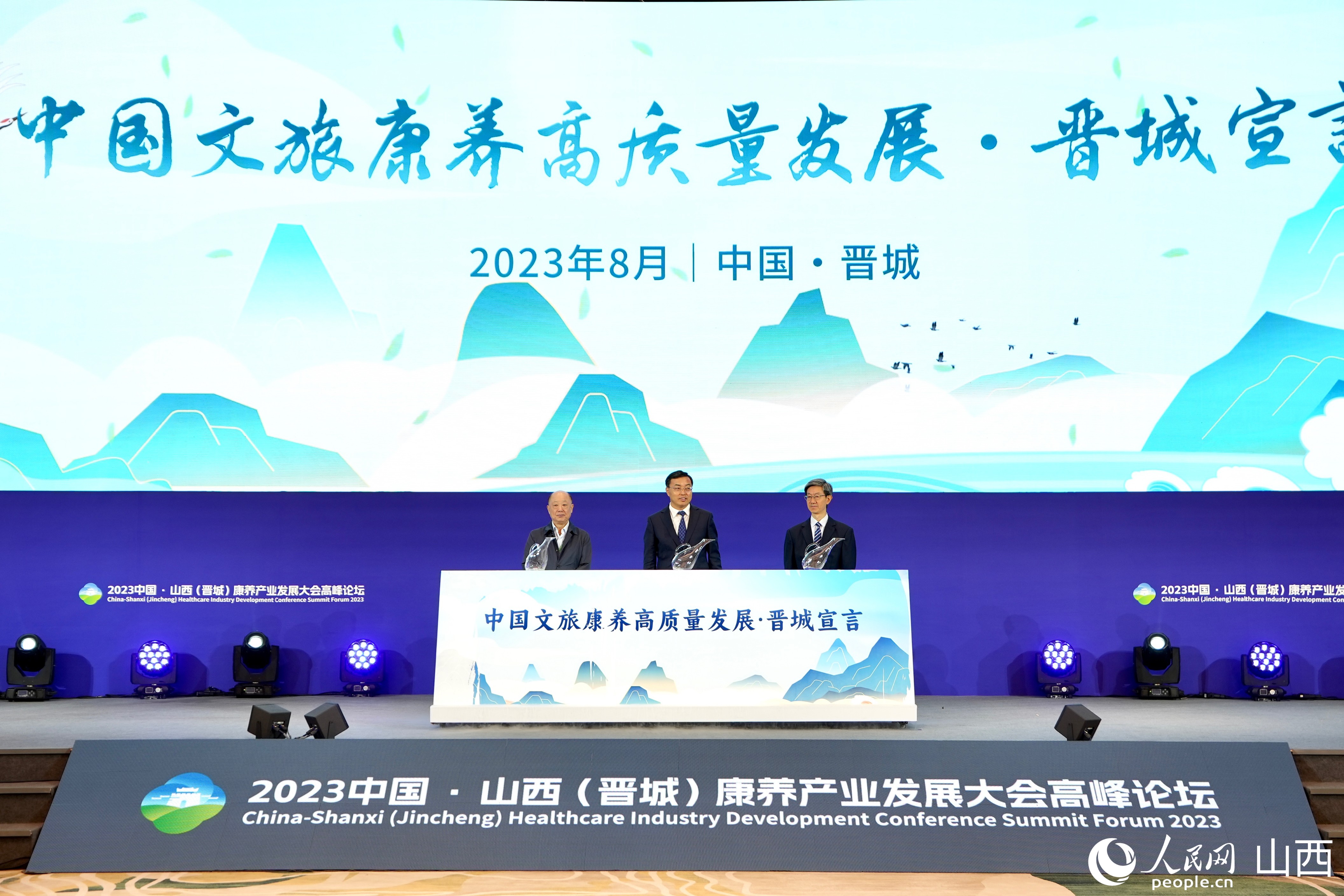 《中國(guó)文旅康養(yǎng)高質(zhì)量發(fā)展晉城宣言》在高峰論壇期間發(fā)布。人民網(wǎng) 盧鵬宇攝