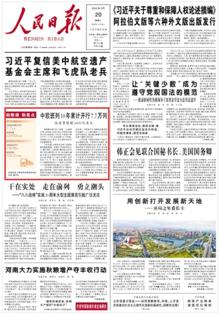人民日報|中歐班列10年累計開行7.7萬列 運(yùn)送貨值超3400億美元
