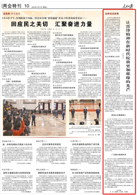 雷鋒精神,人人可學;奉獻愛心,處處可為。代表委員表示,要努力踐行社會主義核心價值觀,積極向上向善,以實際行動書寫新時代的雷鋒故事,為強國建設、民族復興貢獻更多力量。(本報記者陳圓圓、徐陽、李卓爾、蘇濱、張明瑟、王永戰(zhàn)、王影迪、竇皓、王云娜)