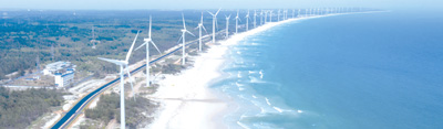 為滿足海南自貿(mào)港高質(zhì)量發(fā)展電力需求,有效推進大規(guī)模新能源電力消納,海南500千伏主網(wǎng)架工程正在抓緊建設(shè)。圖為海南省文昌市木蘭灣沿海的風(fēng)力發(fā)電機。