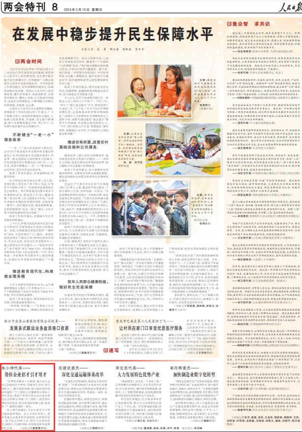 人民日報(bào)丨朱小坤代表:幫扶企業(yè)招才引才用才