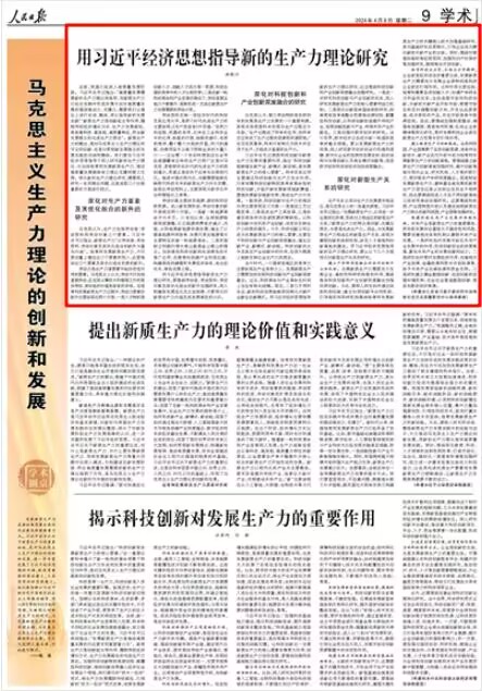 發(fā)展新質(zhì)生產(chǎn)力是推動(dòng)高質(zhì)量發(fā)展的內(nèi)在要求和重要著力點(diǎn)。習(xí)近平總書記關(guān)于新質(zhì)生產(chǎn)力的重要論述,是對(duì)馬克思主義生產(chǎn)力理論的創(chuàng)新和發(fā)展,進(jìn)一步豐富發(fā)展了習(xí)近平經(jīng)濟(jì)思想的內(nèi)涵,既具有重要的理論意義,又具有深刻的實(shí)踐意義。我們要堅(jiān)持以習(xí)近平新時(shí)代中國(guó)特色社會(huì)主義思想為指導(dǎo),深入學(xué)習(xí)貫徹習(xí)近平經(jīng)濟(jì)思想,不斷深化對(duì)新質(zhì)生產(chǎn)力的研究,為發(fā)展新質(zhì)生產(chǎn)力提供學(xué)理支持,為發(fā)展馬克思主義生產(chǎn)力理論提供學(xué)術(shù)支撐。今天刊發(fā)文章,對(duì)此進(jìn)行探討。