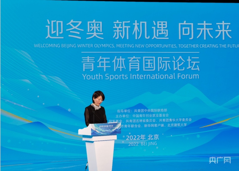 北京冬奧組委志愿者部副部長(zhǎng)張麗娜在青年體育國(guó)際論壇上(央廣網(wǎng)記者 關(guān)靈子 攝)