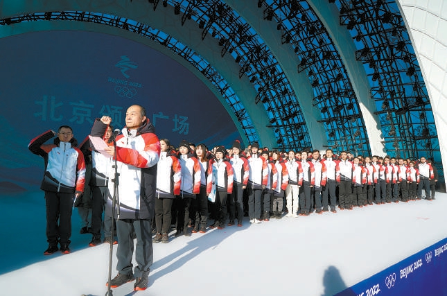 2021年元旦期間,北京頒獎廣場剛剛落成,團(tuán)隊在舞臺上舉行誓師大會。