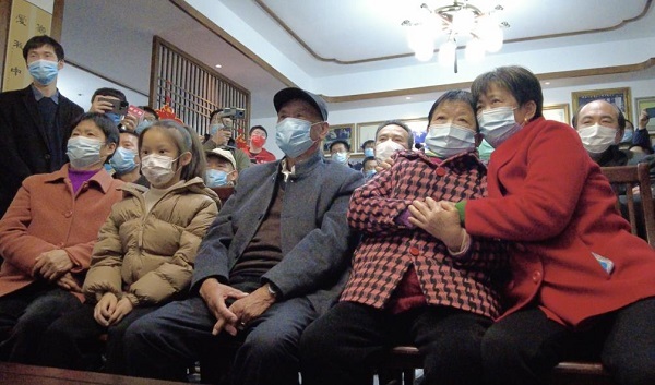 費(fèi)俊龍的老同學(xué)們一起看老照片,回憶舊時(shí)光(央廣網(wǎng)記者鄭楚豫攝)