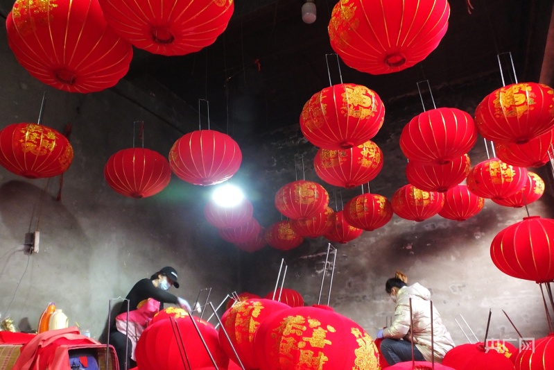 作坊內(nèi),滿屋燈籠紅(央廣網(wǎng)發(fā) 高新生 攝)