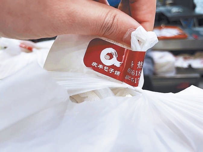 傍晚6時左右,廣渠門內(nèi)地鐵口附近的慶豐包子鋪訂單漸漸多了起來。記者現(xiàn)場看到,服務(wù)員把蒸好的包子和其它菜品裝進(jìn)外賣盒后,馬上用專屬的外賣袋和封簽將食品“封死”。一眼望去,桌上七八份外賣都貼著帶有“慶豐包子鋪”標(biāo)志的專屬紅色封簽。