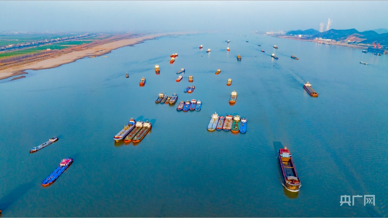 長江航道江西省九江市湖口縣水域船舶往來穿梭,水運(yùn)一派繁忙(央廣網(wǎng)發(fā) 張玉 攝)