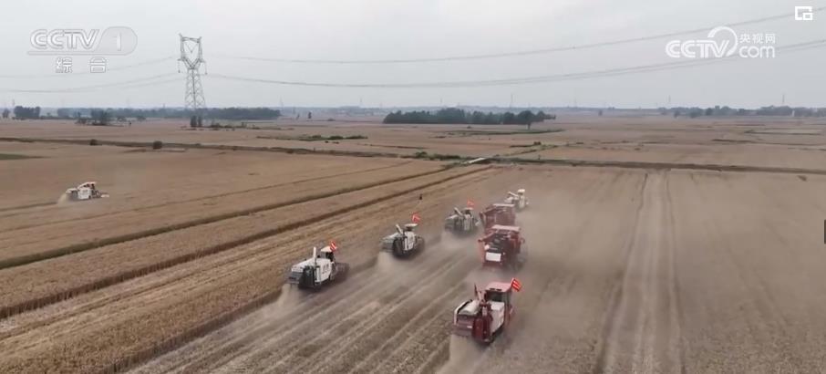 總臺(tái)央視記者 陳燁煒:這里是湖北省襄陽(yáng)市的羅咀村,在我身后幾臺(tái)大型的聯(lián)合收割機(jī)在金色的麥田里來(lái)回穿梭,伴隨收割機(jī)的轟鳴聲,金燦燦的麥穗和麥稈分離,一粒粒金黃色的小麥進(jìn)入了收割機(jī)的糧倉(cāng)當(dāng)中。