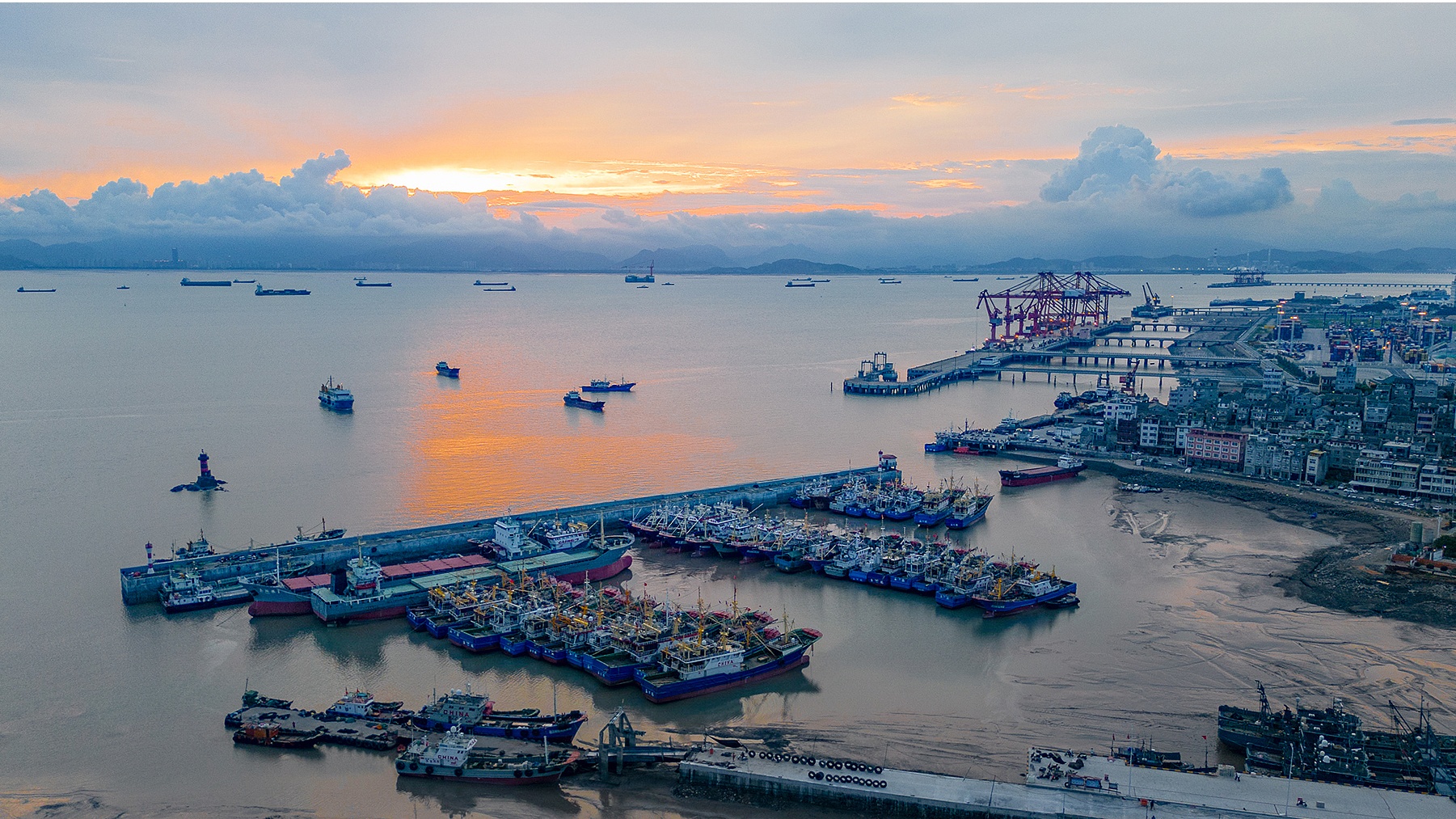 2023年7月24日,浙江臺州,避風漁船??吭谟癍h(huán)市大麥嶼二級漁港。