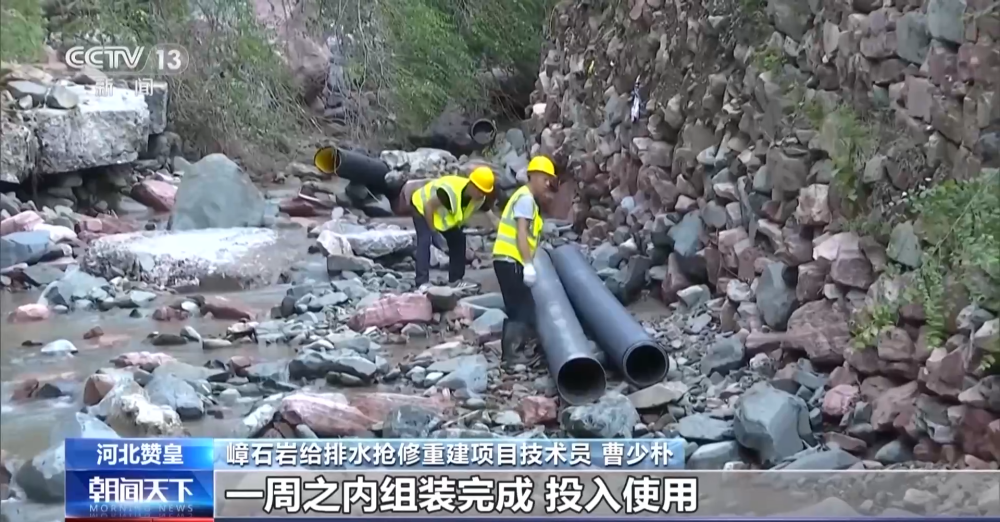 嶂石巖給排水搶修重建項(xiàng)目技術(shù)員 曹少樸:我們現(xiàn)在投入大量的工人,還有管理人員,現(xiàn)在是三班倒,在緊急搶修中,一周之內(nèi)組裝完成,投入使用。